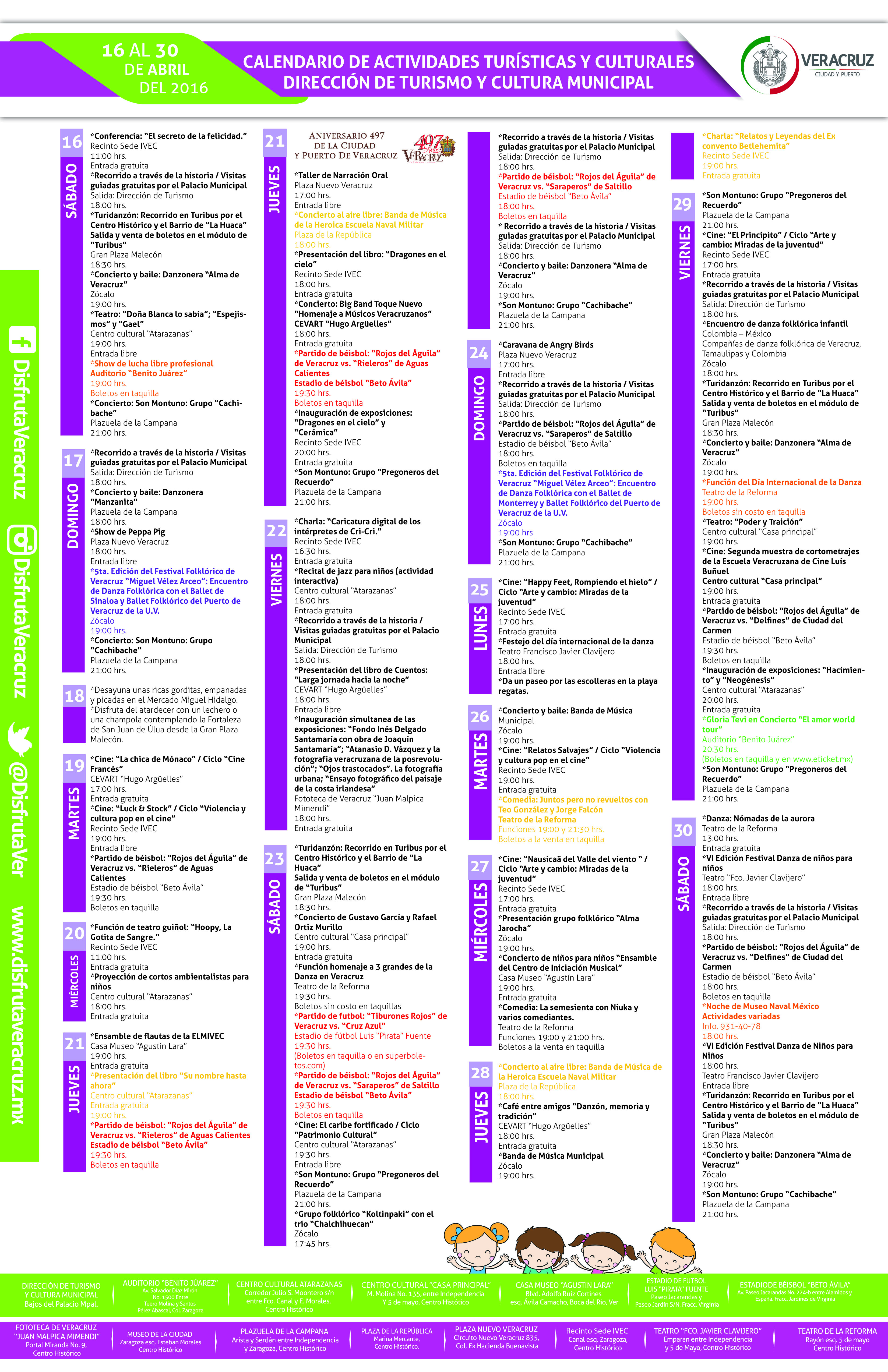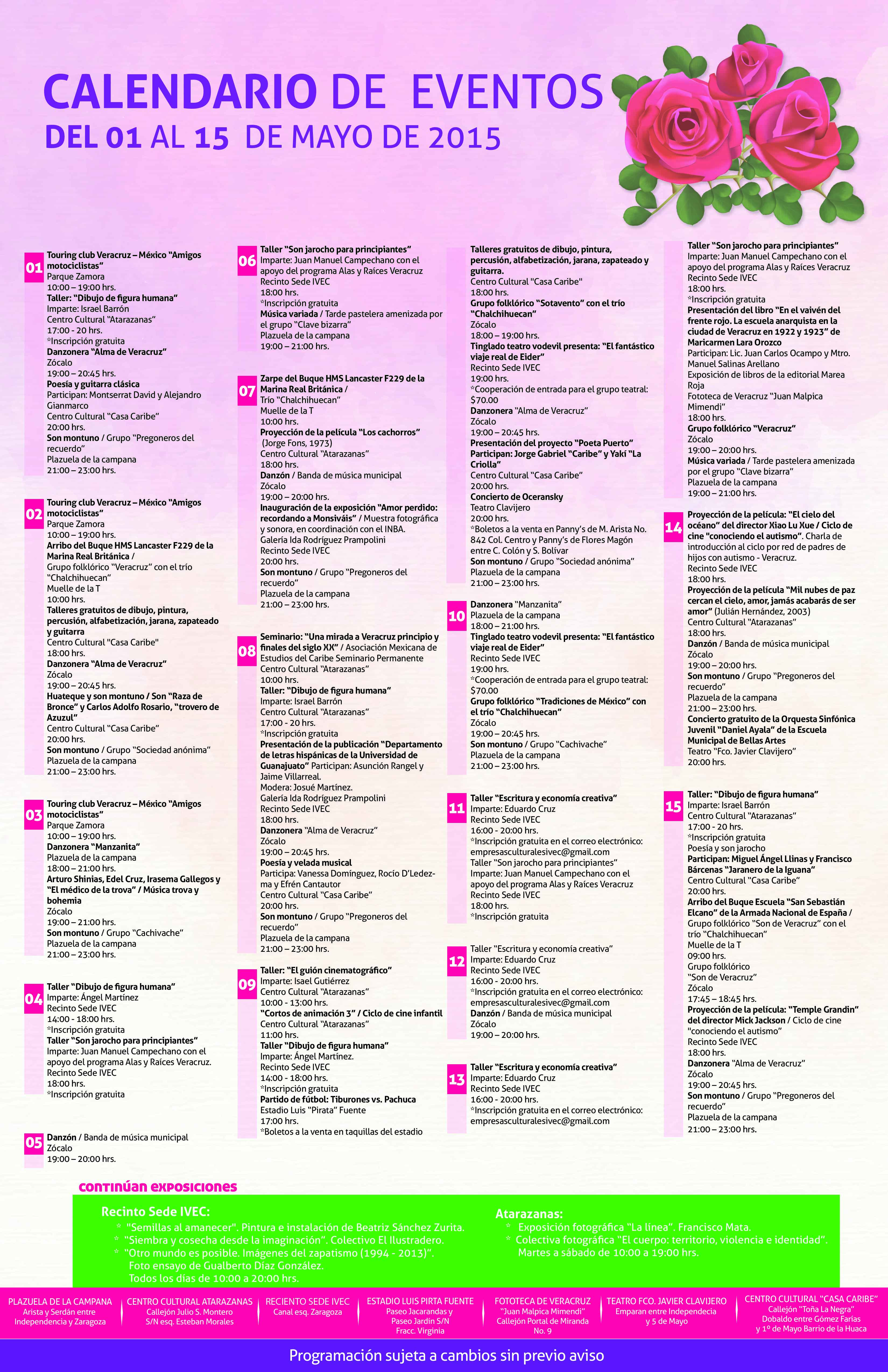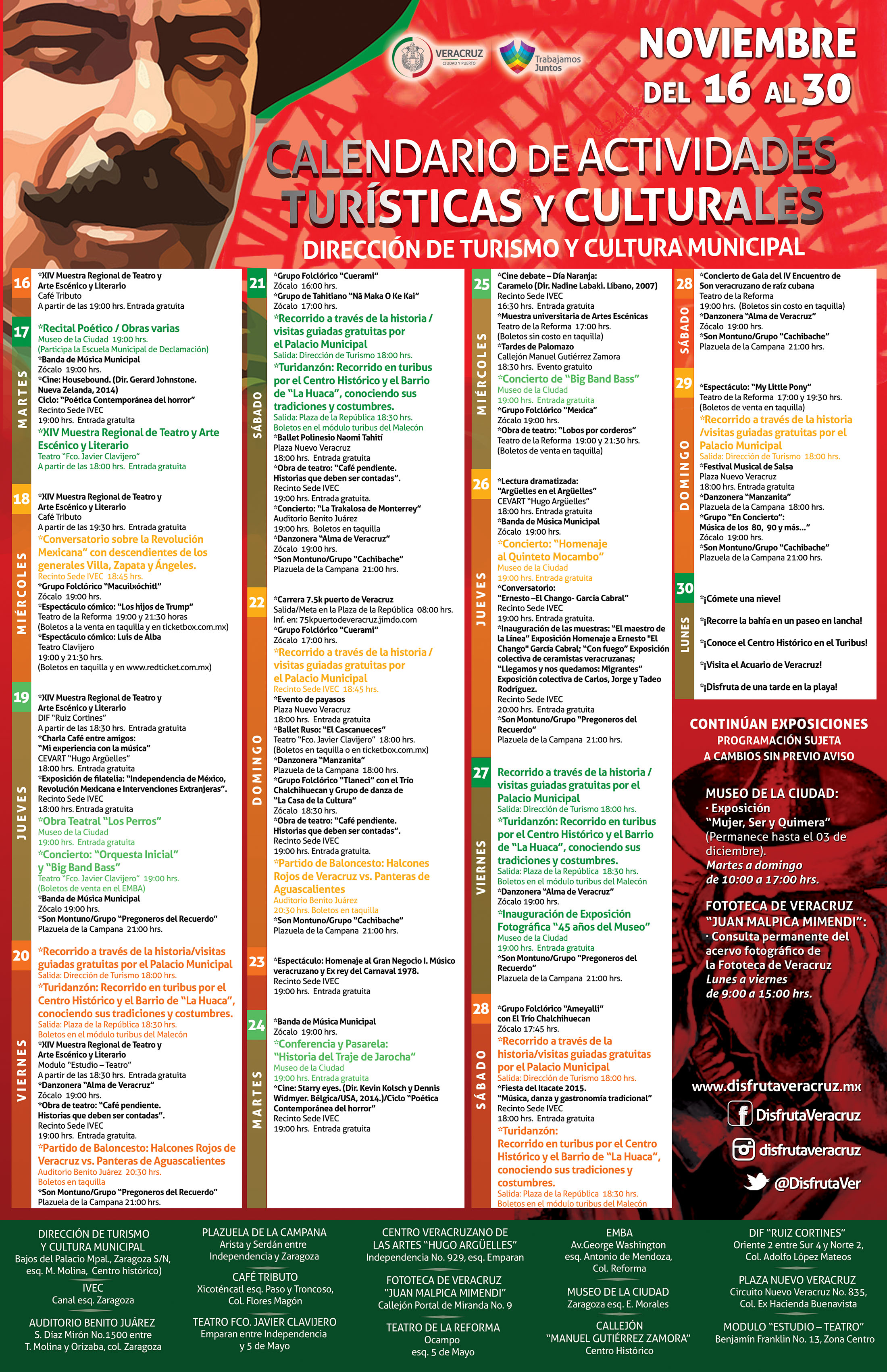 -El Calendario con las actividades culturales, deportivas y recreativas que se realizan;