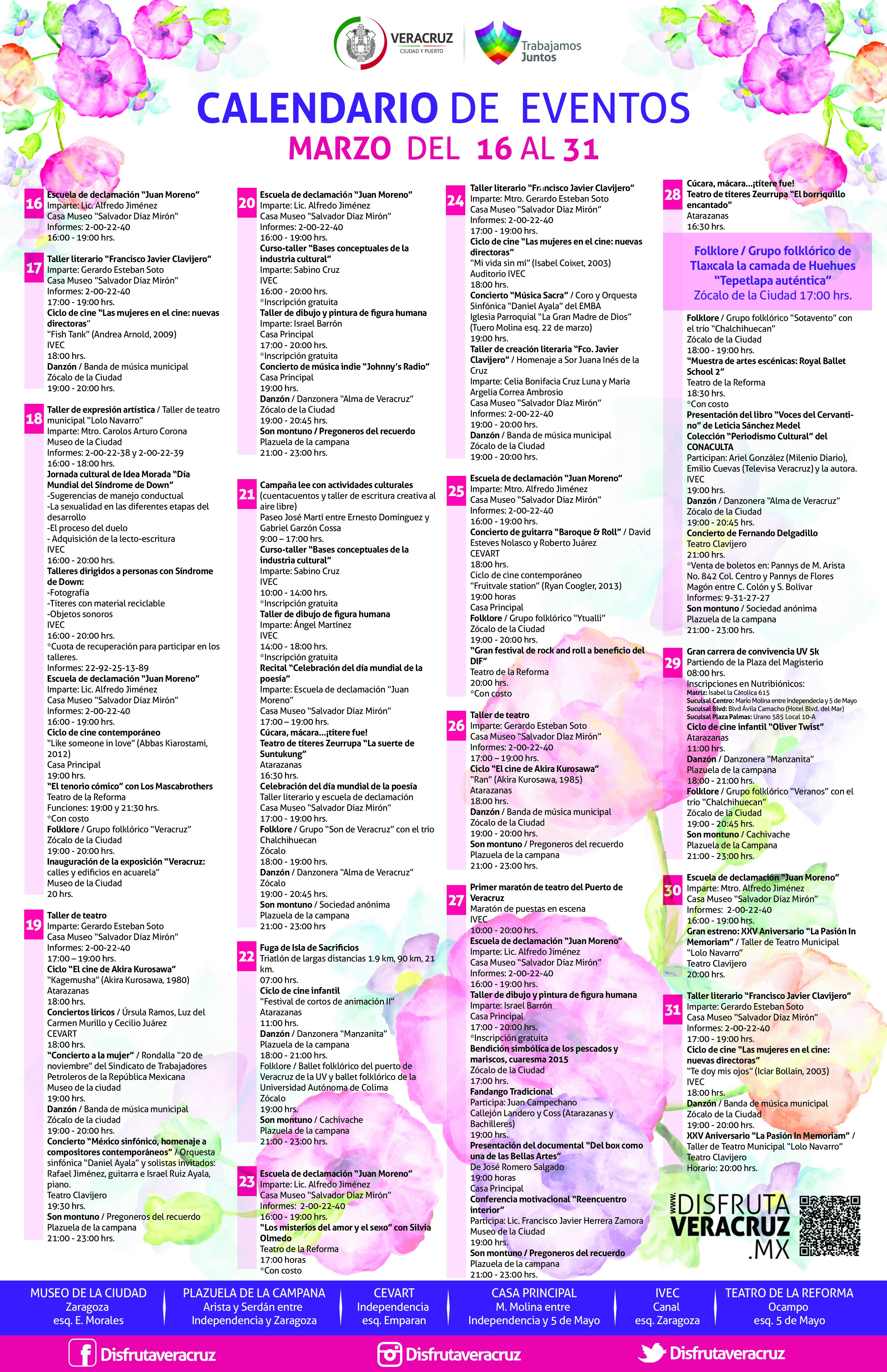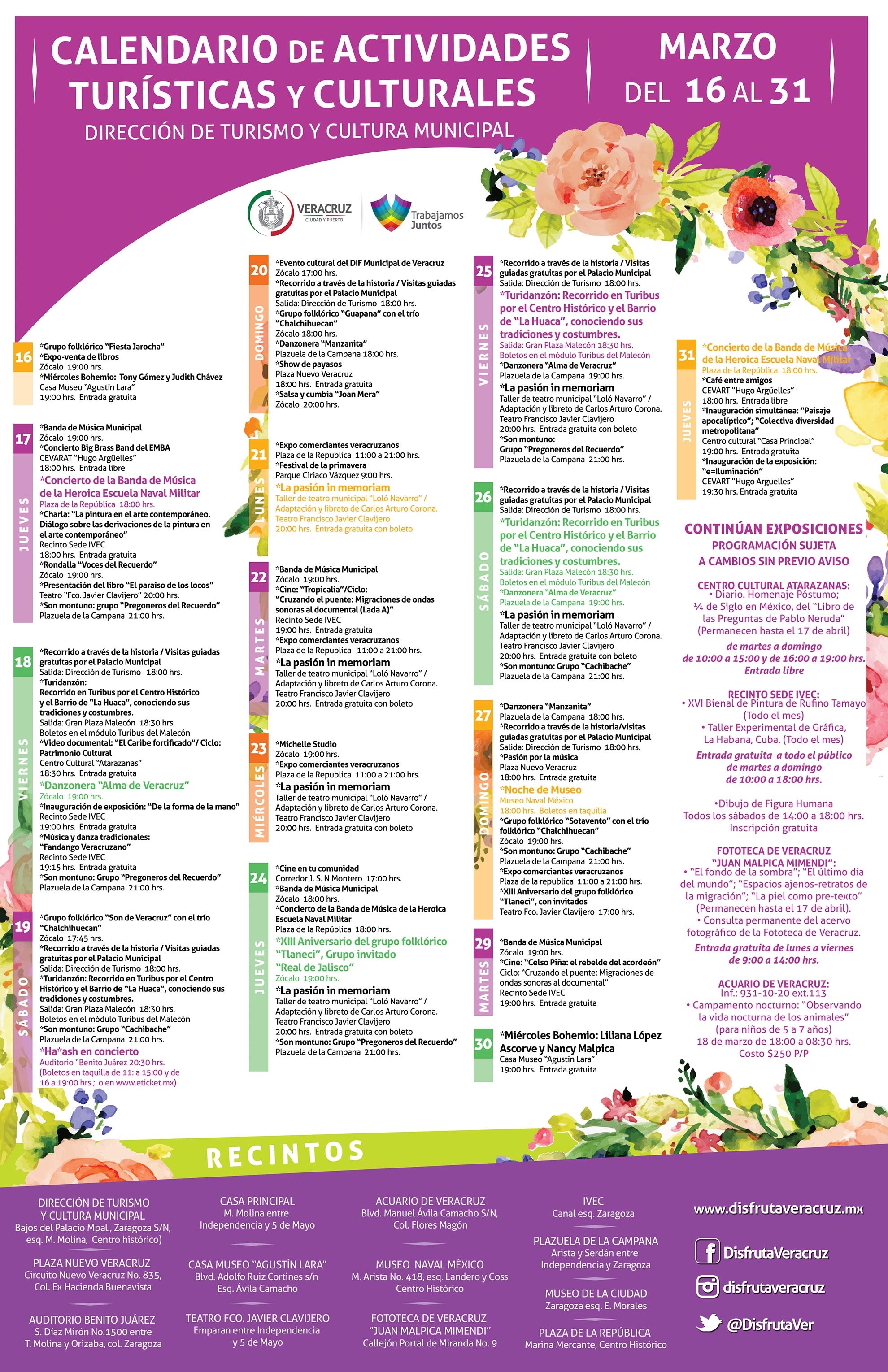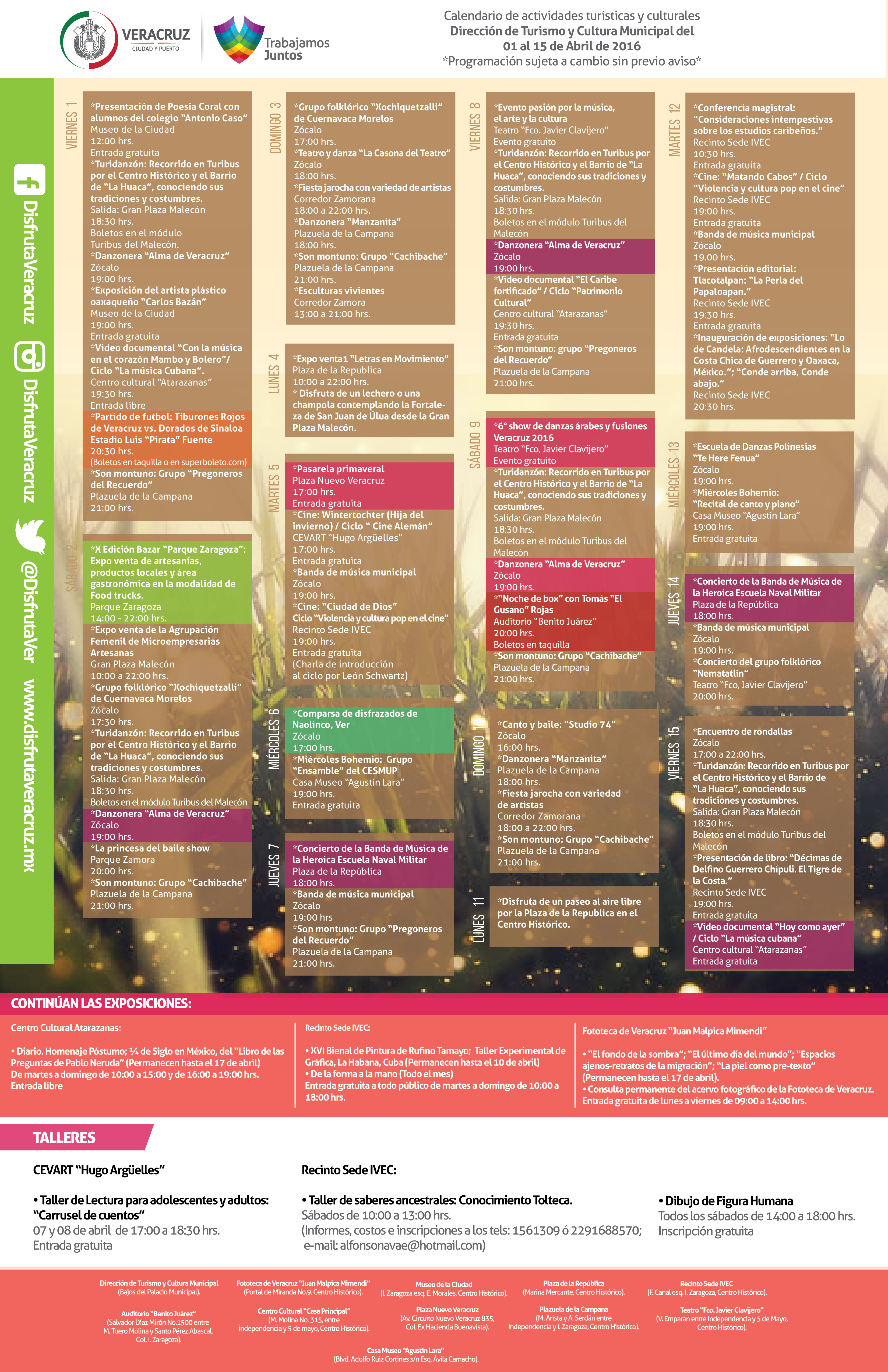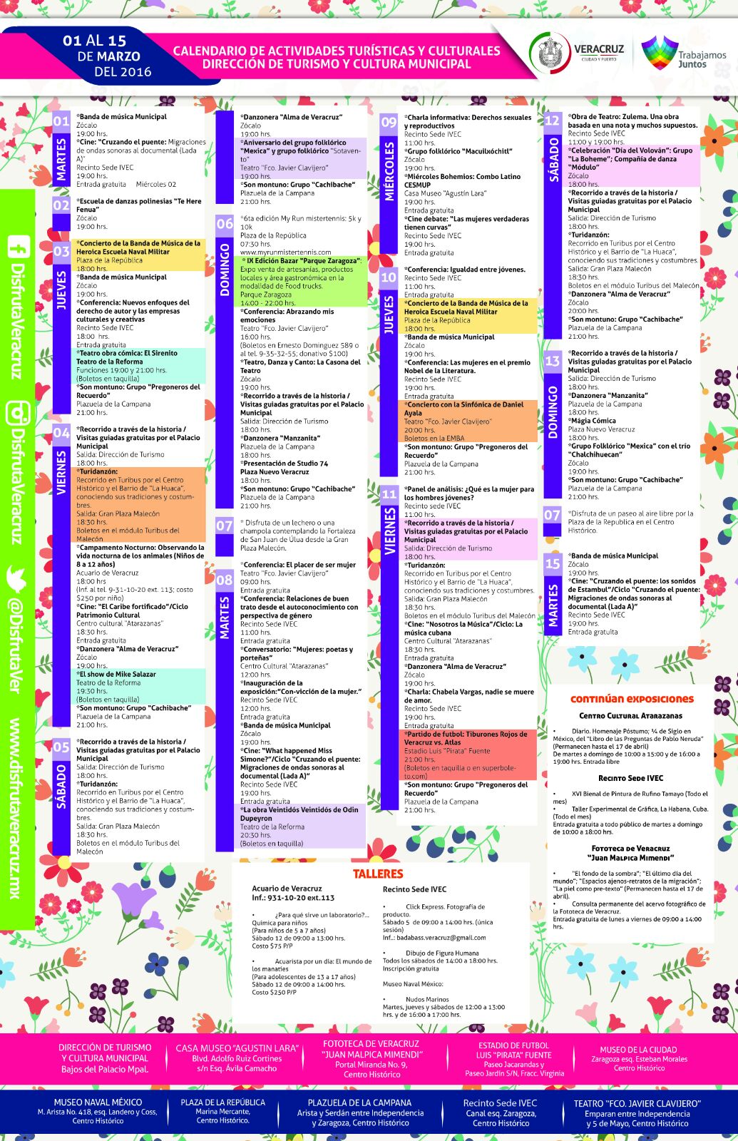 -El Calendario con las actividades culturales, deportivas y recreativas que se realizan;